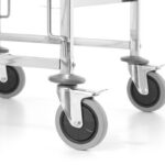 De HENDI afruimwagen 15x is een robuuste en praktische oplossing voor het efficiënt vervoeren van trays in professionele keukens. Gemaakt van hoogwaardig roestvast staal, beschikt de afruimwagen over geprofileerde geleiders met een tussenafstand van 80 mm, waardoor stabiel opgeborgen kan worden tot 15 GN 1/1-, 30 GN 1/2- of 45 GN 1/3-trays. Voorzien van grote rubberen zwenkwielen en beschermende stootranden zorgt hij voor soepele bewegingsvrijheid en duurzaamheid, waardoor het een ideale keuze is voor drukke cateringomgevingen.