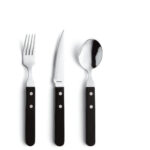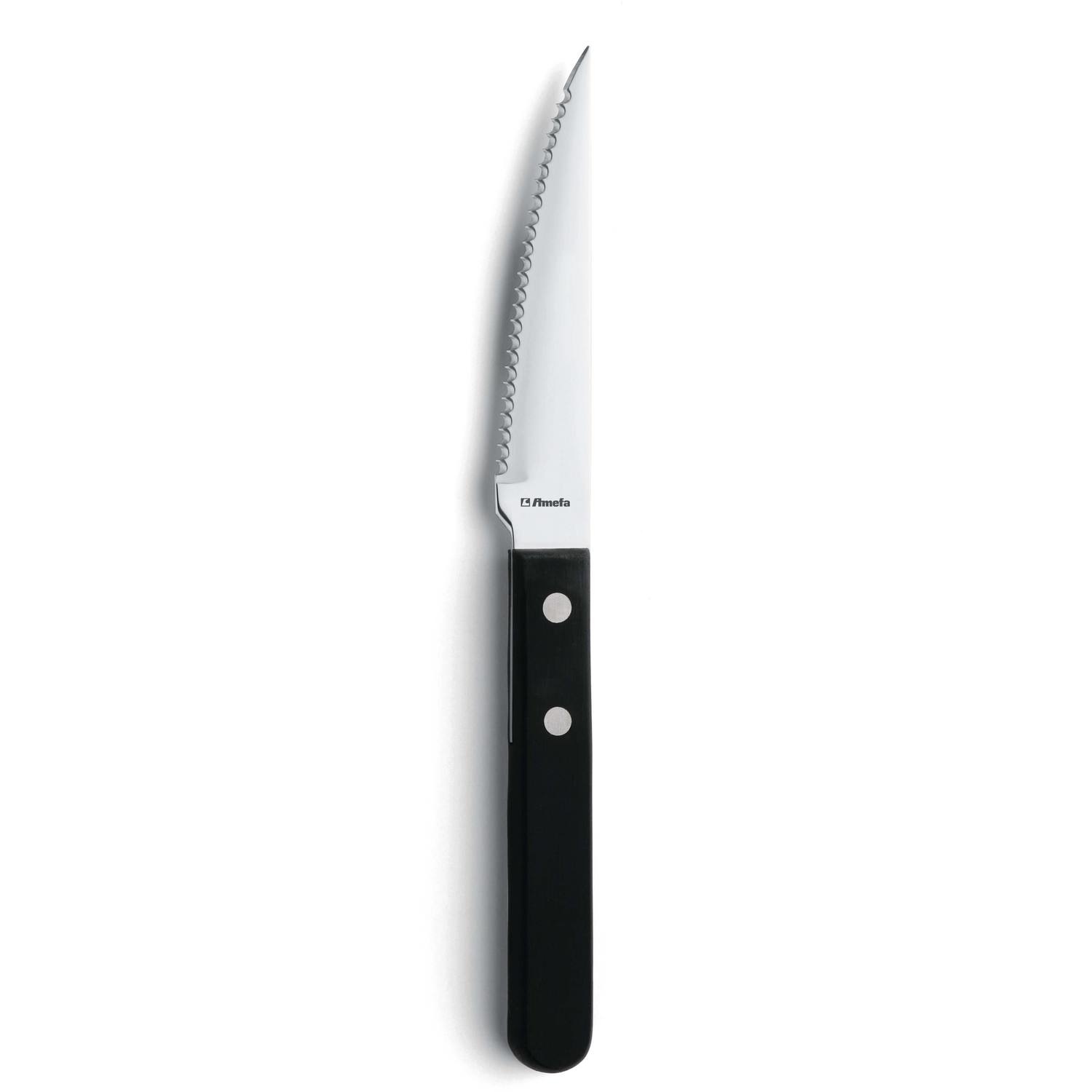 Dit traditioneel gevormde steak/pizza bestek heeft een geklonken handvat. Het bestek ligt fijn in de hand en door de gekartelde lemmet van het mes wordt snijden een makkelijke opgave. De tijdloze vormgeving in combinatie met het duurzame ontwerp zorgt er voor dat u jaren lang plezier heeft van uw bestek.