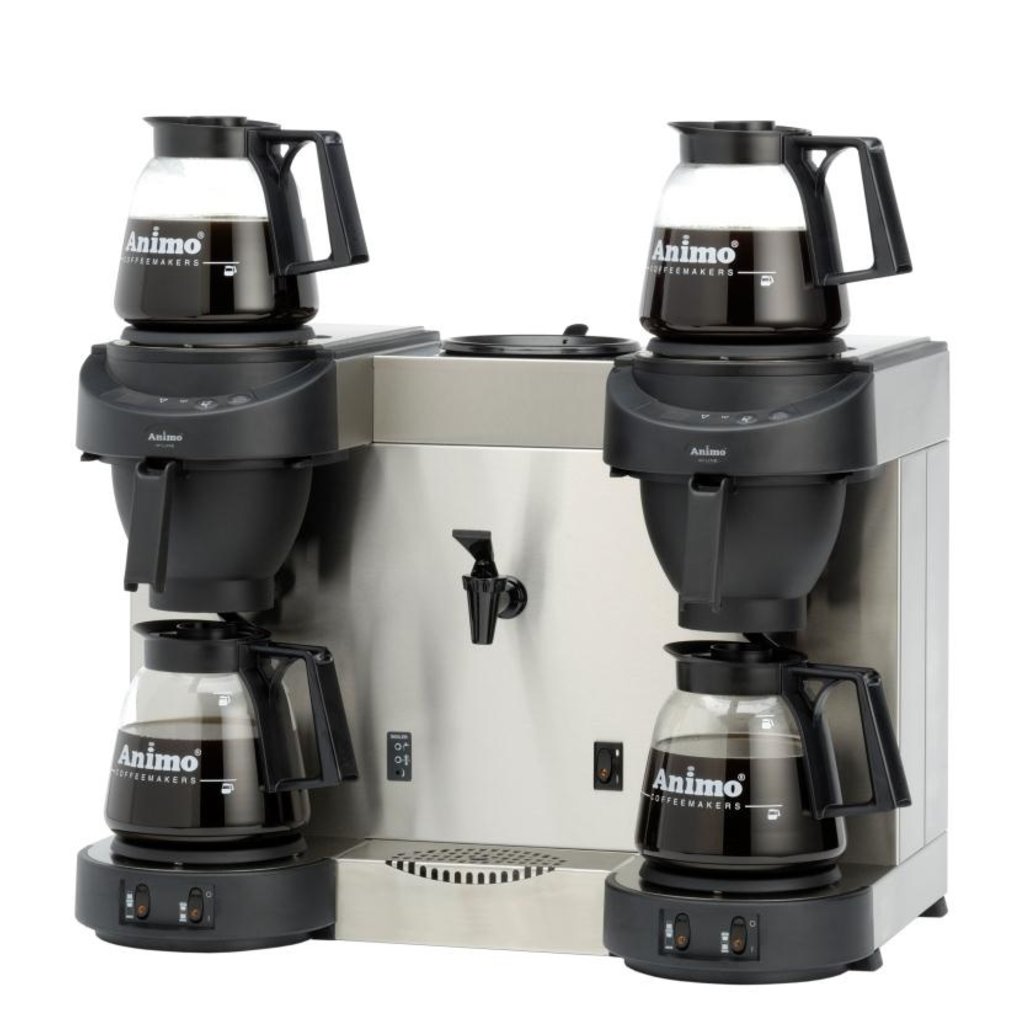 Met de koffiezetter M202W kunt u eenvoudig en snel, rechtstreeks in een glazen kan verse filterkoffie zetten. De zettijd bedraagt ongeveer 6 minuten voor een volle kan koffie (1,8 liter). Dankzij de speciale zelfregulerende warmhoudplaten is uw koffie altijd op de juiste temperatuur! Door de extra waterkoker beschikt u ook over heetwater voor bijvoorbeeld thee. De koffiezetter sluit u eenvoudig op de waterleiding aan.