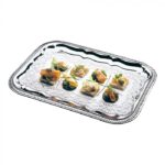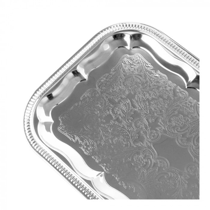 Partyplateau met sierrand, rechthoekig, 53×32,5 cm. Verchroomd metaal.