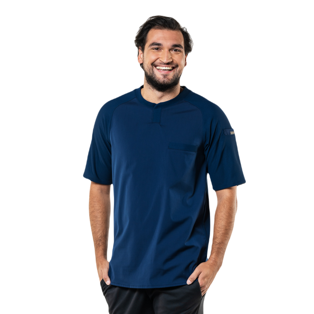 De fijne combinatie van de geweven stof, tricot achterkant en mouwen geeft dit shirt een classy look met een hoog werkcomfort. Het shirt heeft een borstzakje en een lus achter in de nek houdt een schort mooi op zijn plek. Kies voor stoer, elegant of koel met de verschillende beschikbare kleuren. De variant met korte mouw draagt zowel heerlijk in de keuken als in de bediening.