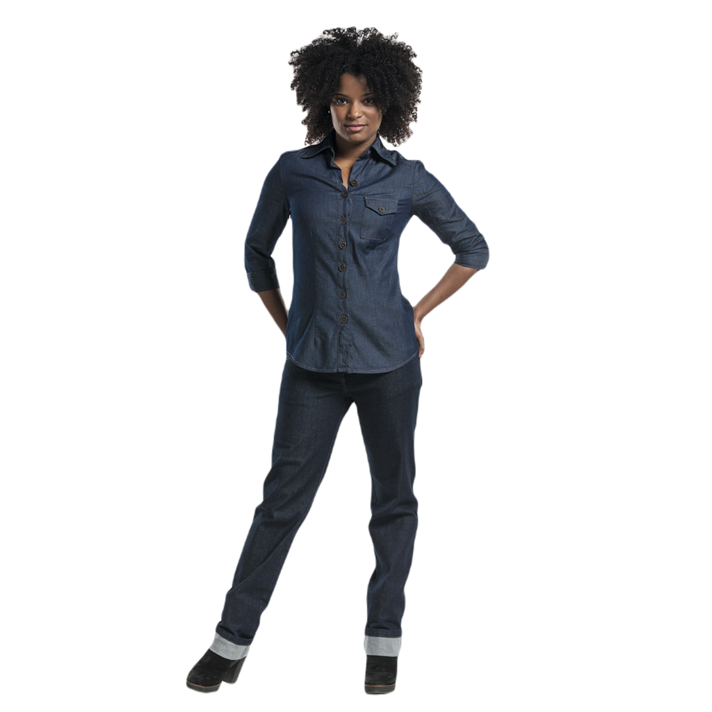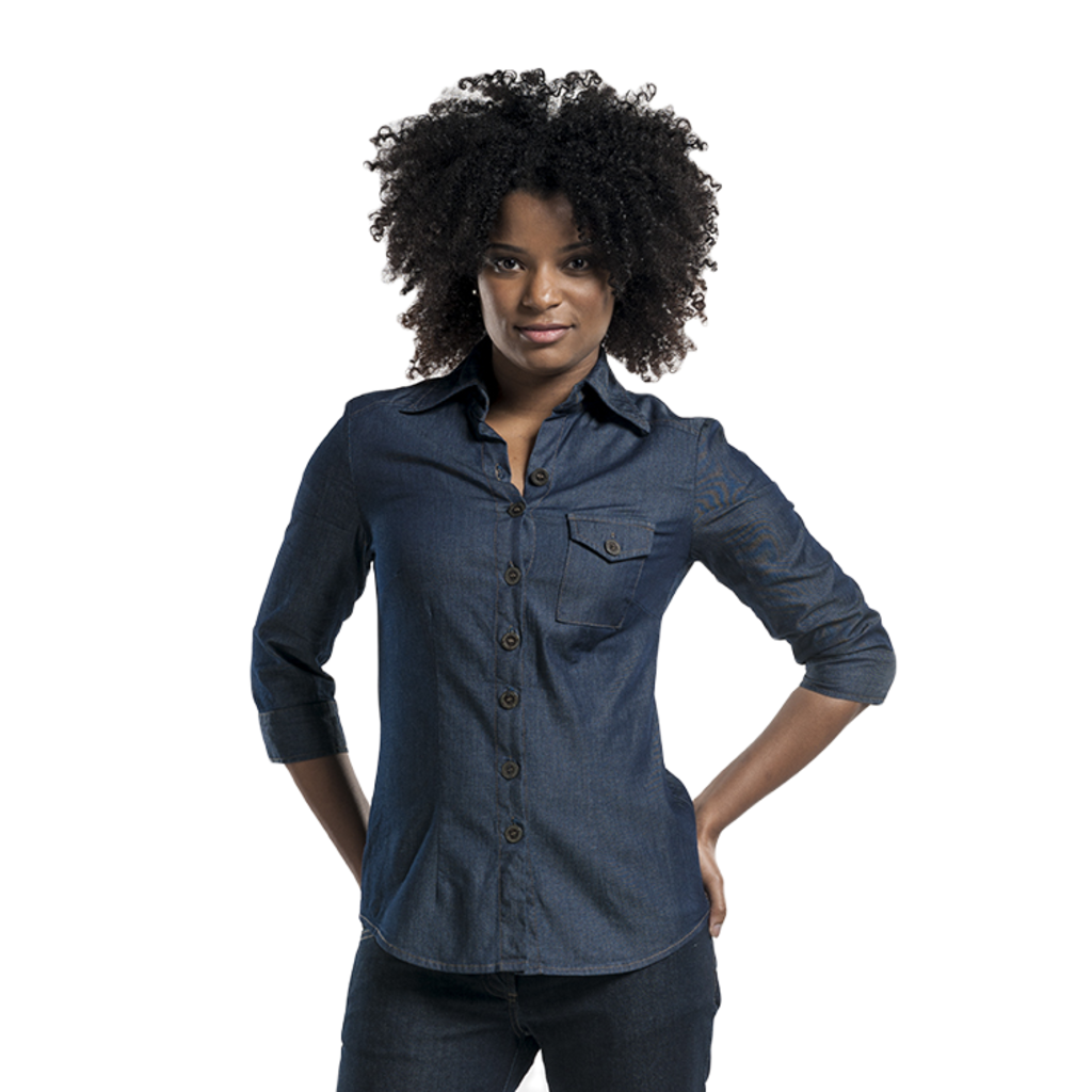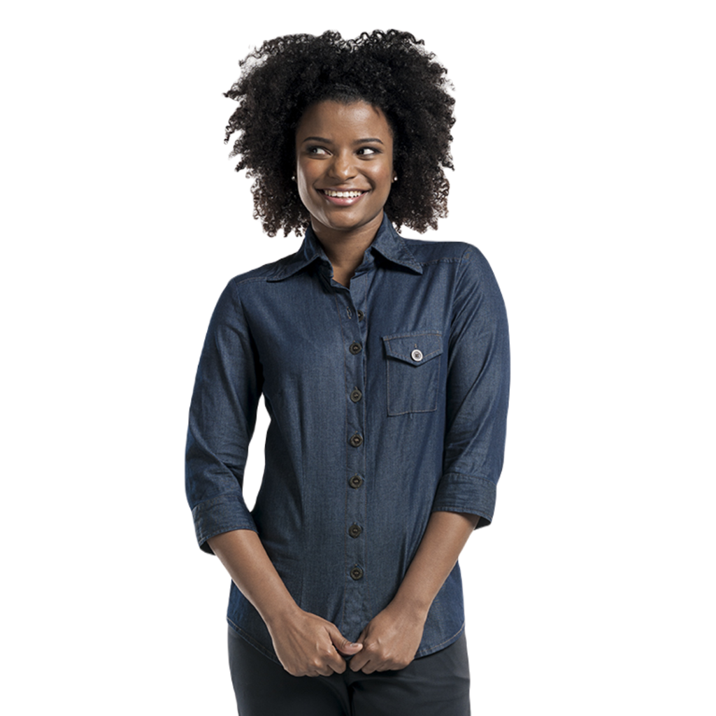 Chaud Devant Dames Shirt Blue Denim Stretch 3/4 mouw