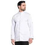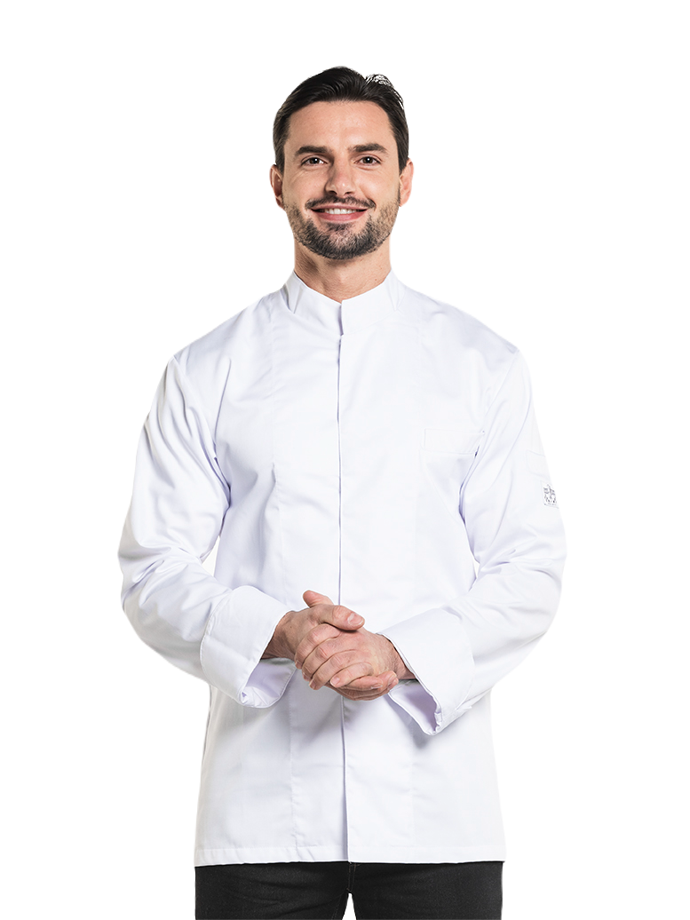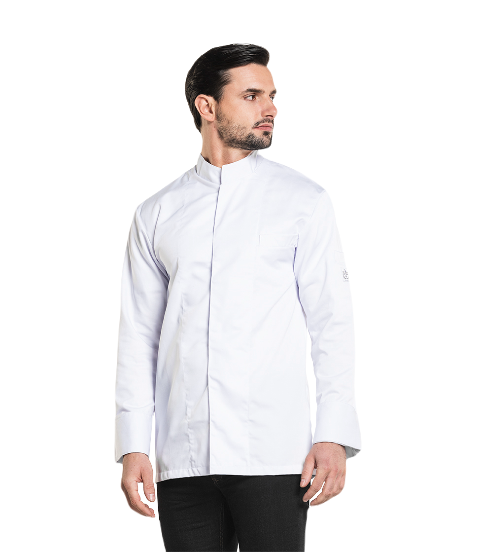 De Executive is op alle manieren een trendy koksbuis te noemen. De Straight fit in combinatie met de blinde afwerking middenvoor maakt een vlotte indruk en de luxe borst- en mouwzakjes maken het geheel af. Dankzij de satijnbinding valt het jasje soepel. Tip: laat het bovenste knoopje open voor een nonchalante look.