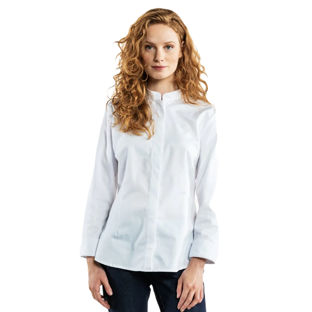 Join the evolution! Deze originele witte Koksbuis Cambio voor dames is gemaakt van gerecyclede materialen en is een logische keuze voor de chef die voorop wil lopen in verduurzaming. Door te kiezen voor deze koksbuis draag je bij aan een groenere toekomst, inspireer je het team en je collega’s om ook milieubewuste keuzes te omarmen en voel je je nog lekkerder in de keuken. Het eigentijdse ontwerp straalt puurheid, elegantie en professionaliteit uit. For the future and beyond, wear it again!