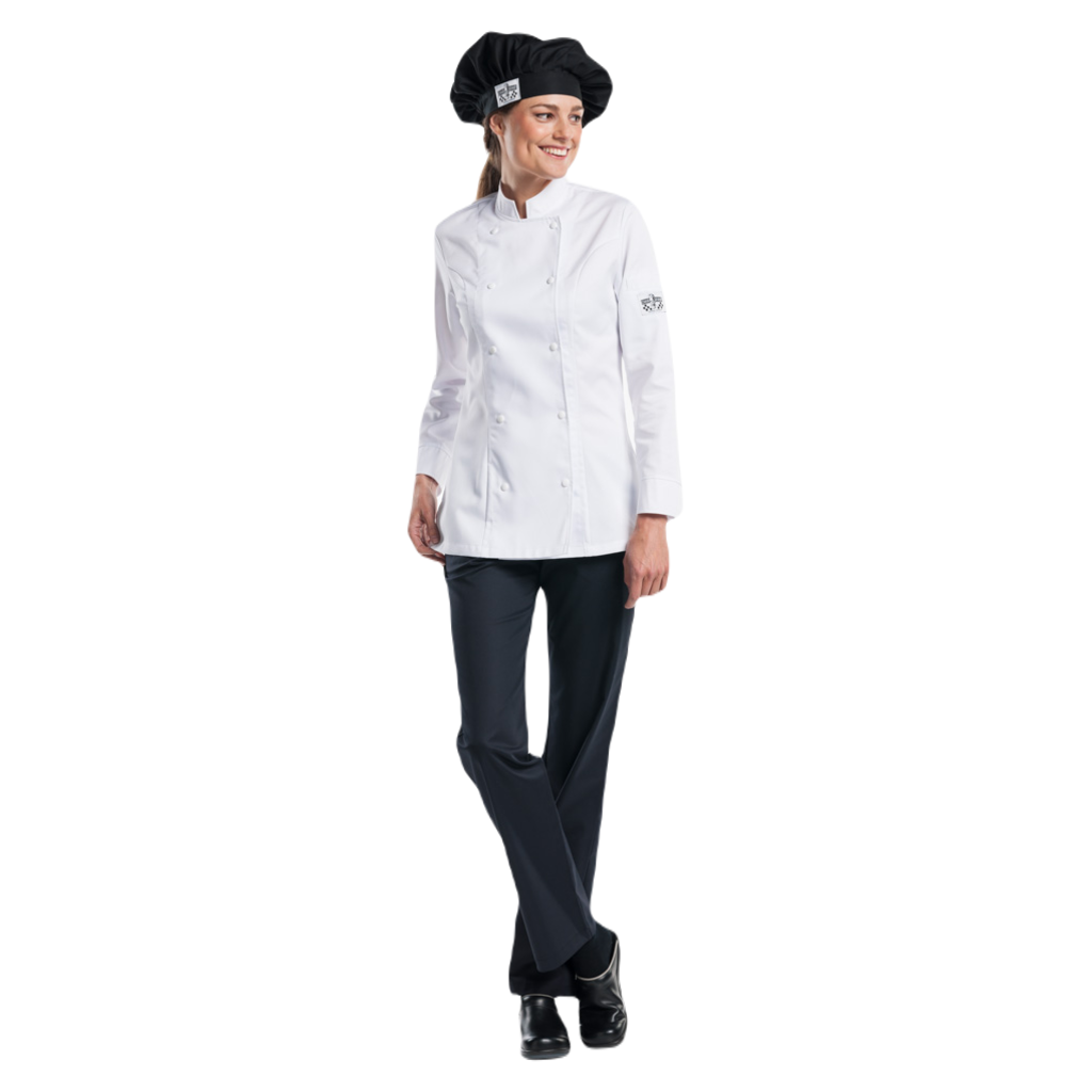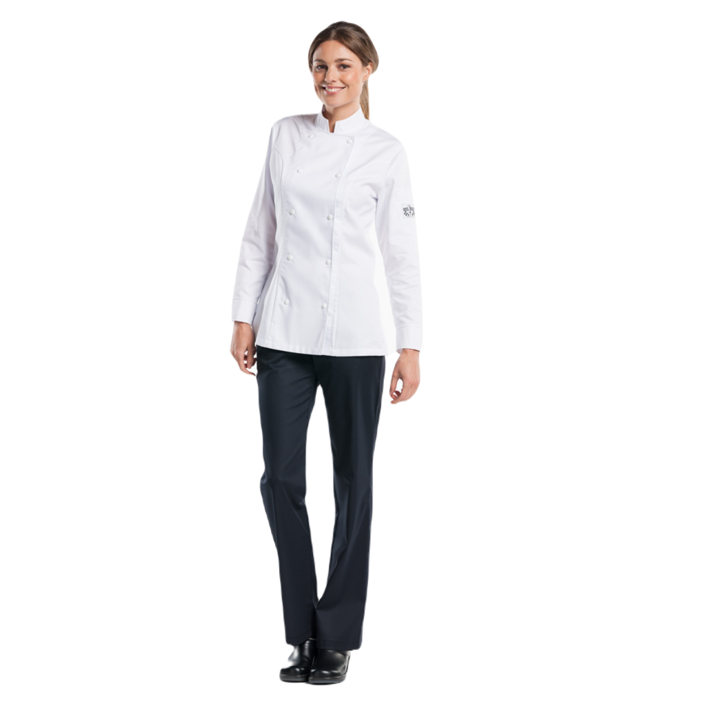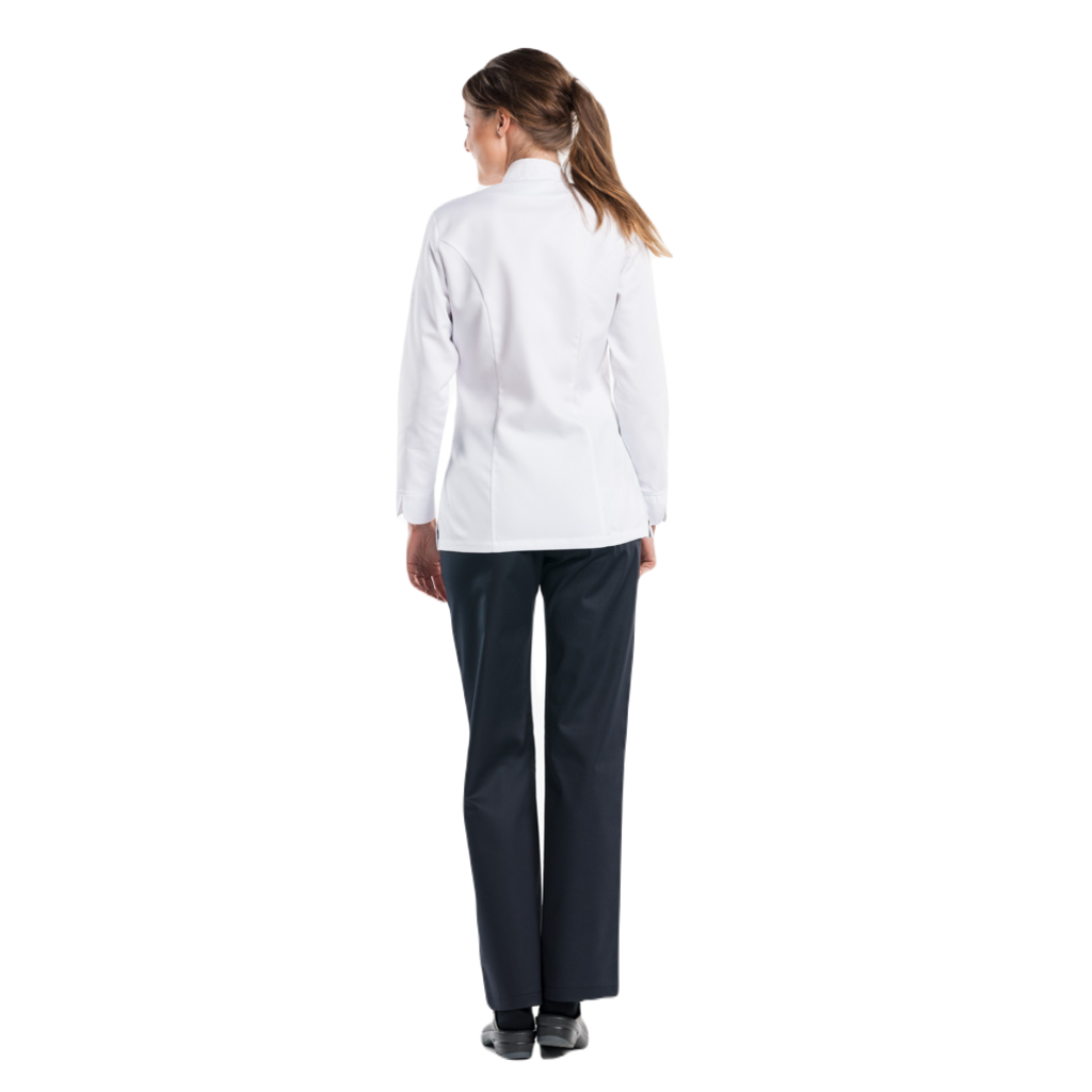 Deze ultieme Tailored Fit jas is speciaal ontwikkeld voor dames. De vrouwelijke variant is naast de charmante pasvorm identiek aan onze Comfort en Roma jacket. Dat betekent: een dubbele lijst met zichtbare drukknopen en een elegant afgewerkt manchet. De splitjes in de zij zorgen voor veel bewegingsvrijheid. De jas is in zowel wit als zwart verkrijgbaar.