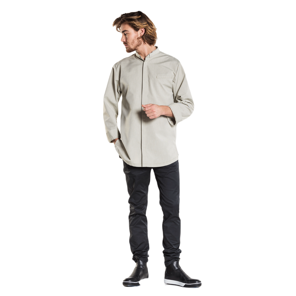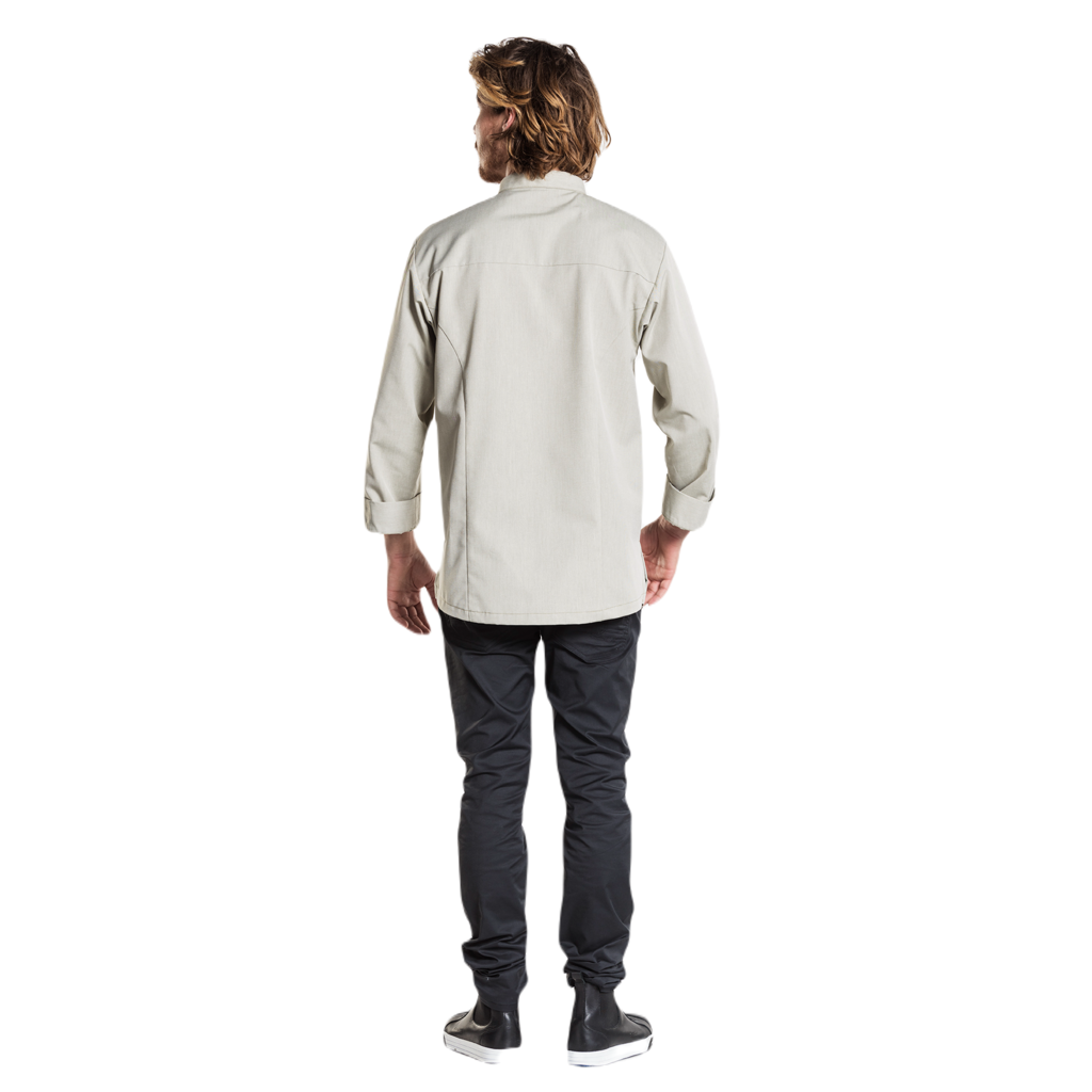 Ga voor een rustige, zuivere look met deze Nordic koksbuis. De jas heeft een Scandinavisch design dat zich kenmerkt door functionaliteit en eenvoud. Zo heeft de jas een blinde sluiting en een handige borst- en pennenzak. De kraag is modern en afgewerkt met de stiksels van een bies. Deze variant heeft een sneeuwwitte kleur, waardoor je hem makkelijk kan combineren met een leuk schort.