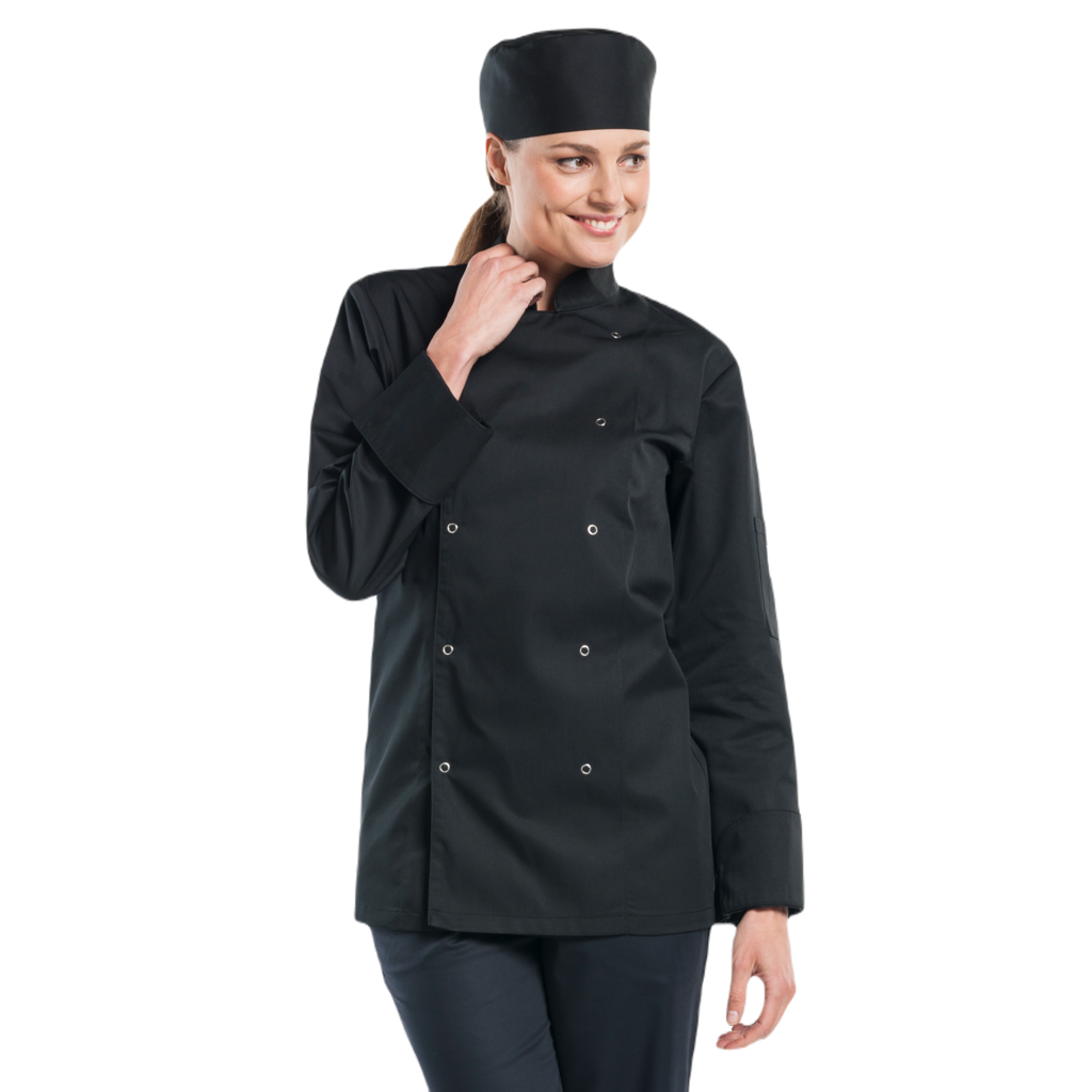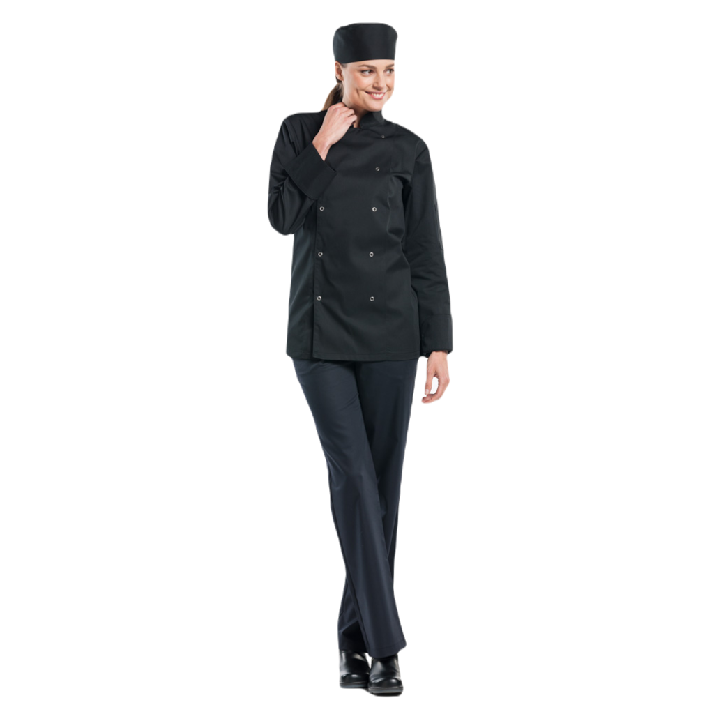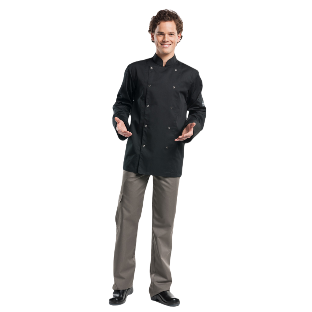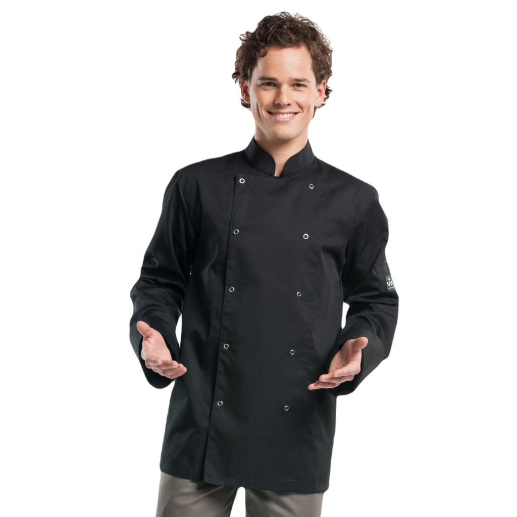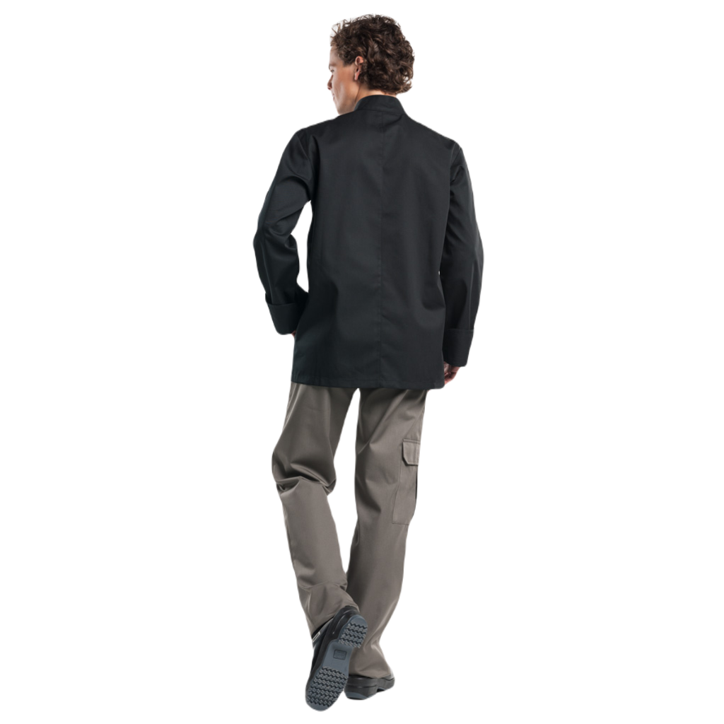 Deze Hilton maakt deel uit van onze BSX-collectie en is ook een echte 'basic' koksbuis. Het model is traditioneel en herkenbaar, maar uiteraard wel modern uitgevoerd. De stof is praktisch en voelt prettig aan. Deze uitstekende allrounder is afgewerkt met zichtbare metalen RVS drukknopen.
