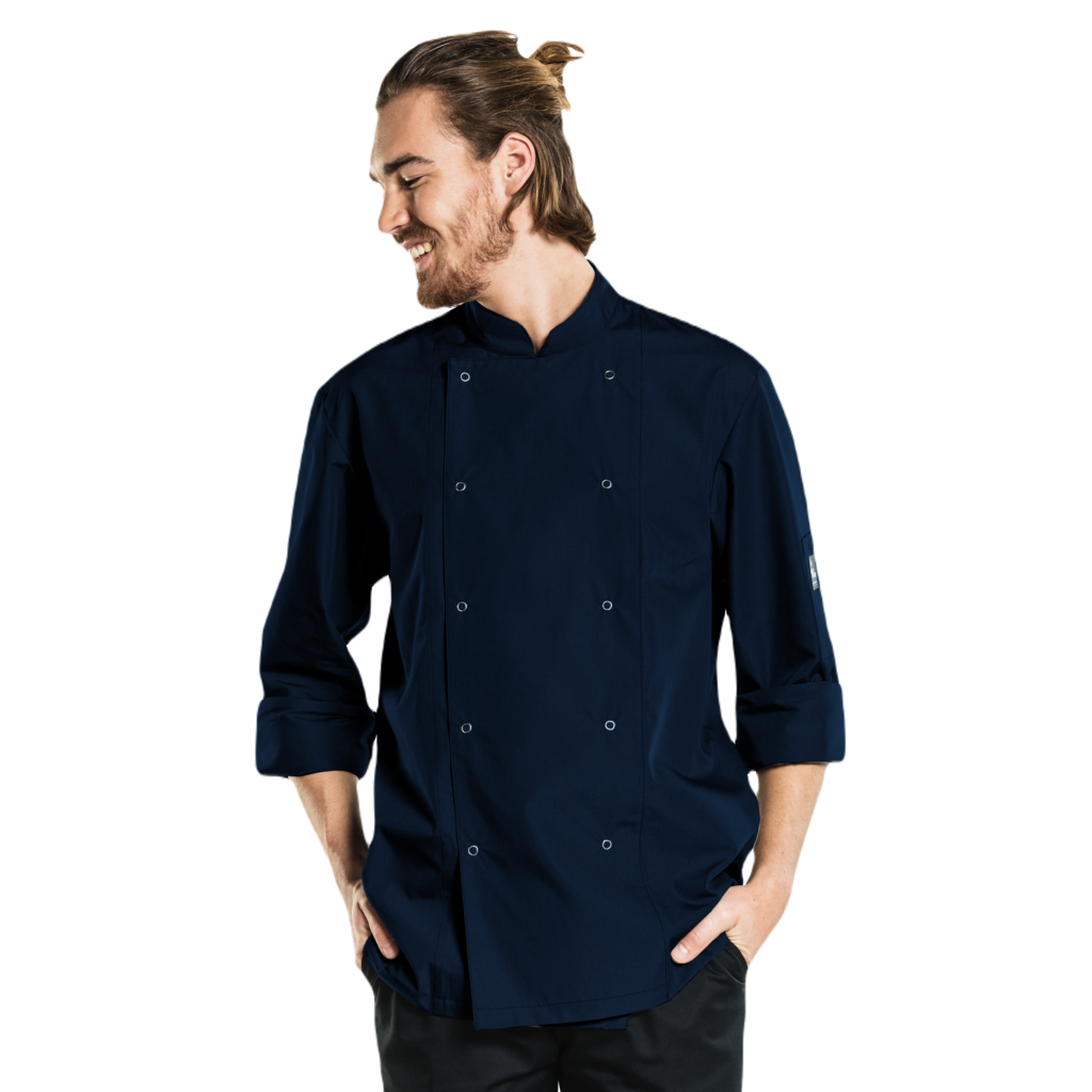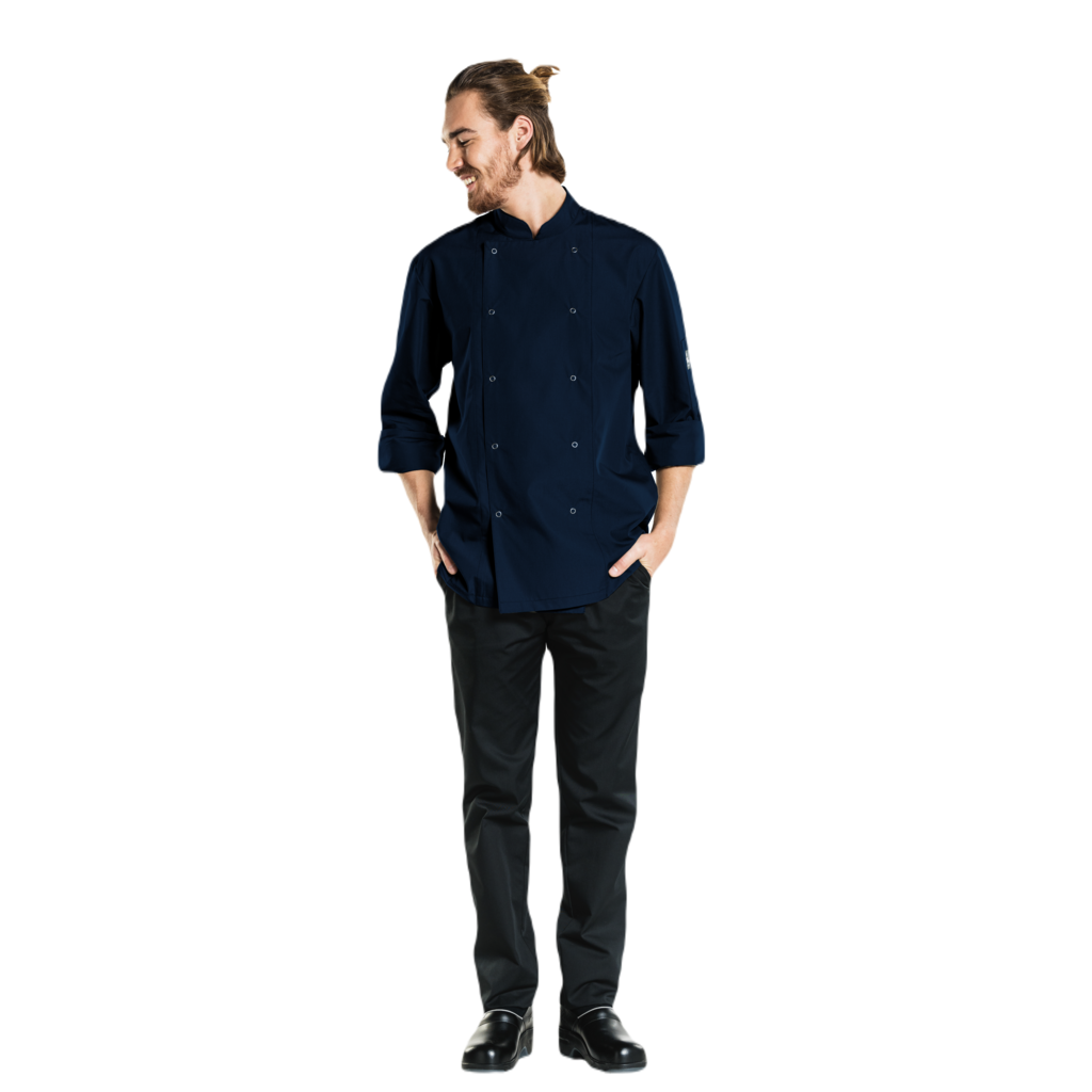 Deze Hilton maakt deel uit van onze BSX-collectie en is ook een echte 'basic' koksbuis. Het model is traditioneel en herkenbaar, maar uiteraard wel modern uitgevoerd. De stof is praktisch en voelt prettig aan. Deze uitstekende allrounder is afgewerkt met zichtbare metalen RVS drukknopen.