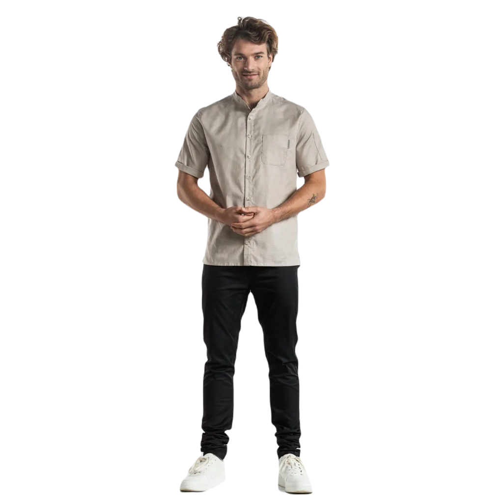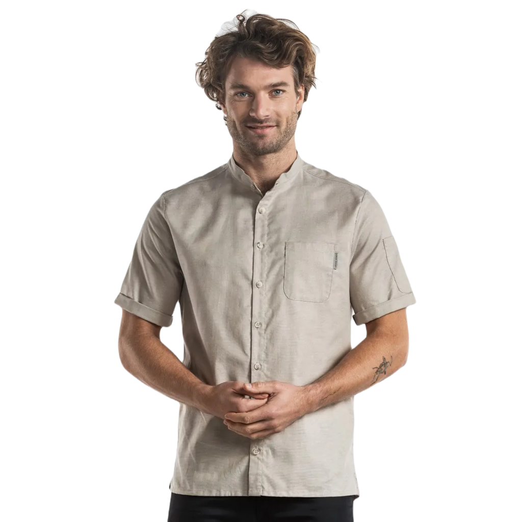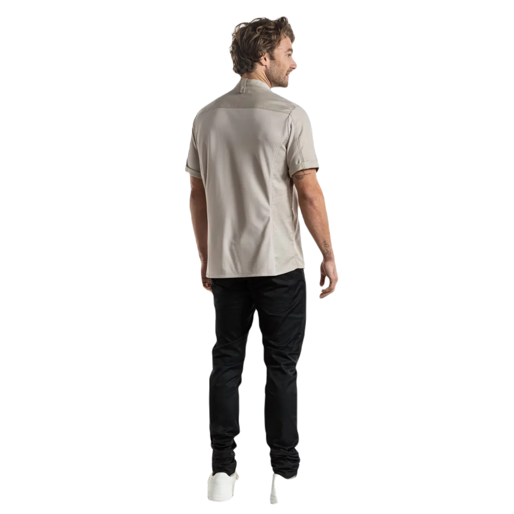 Ontdek stijl en veelzijdigheid met dit verfijnde shirt, geschikt voor het hele team. De aangesloten snit en de korte mouwen, met vaste omgeslagen zoom, creëren een eigentijdse uitstraling. De stretchstof in het achterpand en de mouwen zorgt voor veel comfort gedurende de hele dag. Opvallend zijn de contrasterende knopen. Of je nu kiest voor een elegante pantalon voor de bediening of je combineert het met een schort in de keuken, dit shirt voegt moeiteloos stijl toe aan elke professionele setting.