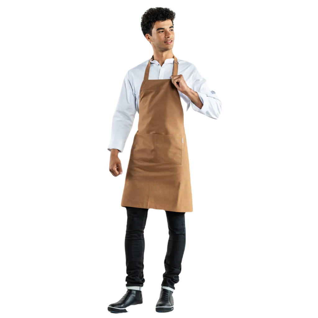 De schorten uit de ‘Indian summer collectie’ kenmerken zich door het feit dat zowel de stof als de labels en het garen voor 100% uit gerecycled materiaal bestaan. Dit model is een echte all-rounder voor zowel de keukenbrigade als de bediending. Het schort heeft twee zakken middenvoor en is dankzij een metalen gesp gemakkelijk te verstellen. Ze zijn in verschillende kleuren leverbaar.