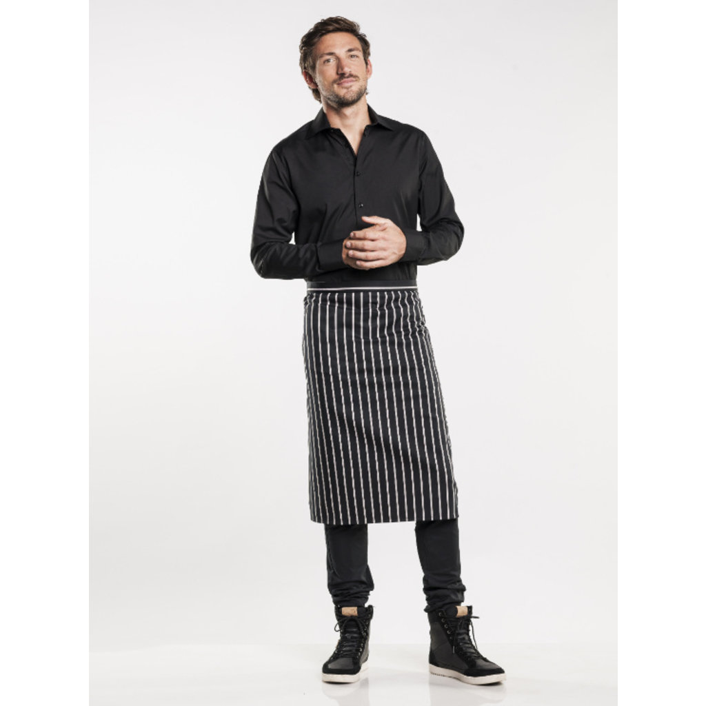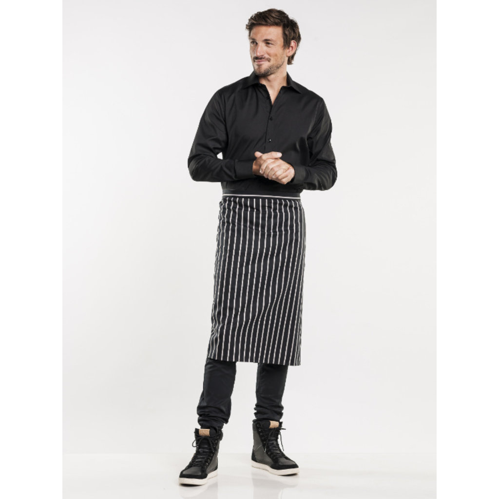 Onze standaard sloof kent een simpel en minimalistisch ontwerp en is daardoor erg prettig in het gebruik. Het schort is een halflang model dat je aan de bovenkant vast kunt knopen. De brede, witte streep van de Remo geeft het een klassieke, maar stoere uitstraling.