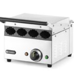 De HENDI Contactgrill voor hotdogs en wraps is een duurzame, compacte grill met een roestvaststalen behuizing en geëmailleerde gietijzeren roosters voor consistente, hoogwaardige resultaten. Met 4 grillsleuven, indicatielampjes, een grilloppervlak van 270 x 250 mm en antislipvoeten is deze grill ideaal voor het efficiënt bereiden van hotdogs of broodjes voor professionele doeleinden.