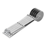 Zware kwaliteit Jan Hagel snijder met 5 gladde ø 55 mm roestvrijstalen snijwielen. De snijdikte kan eenvoudig aangepast worden. Maximale 12,5 cm afstand tussen de wielen.
