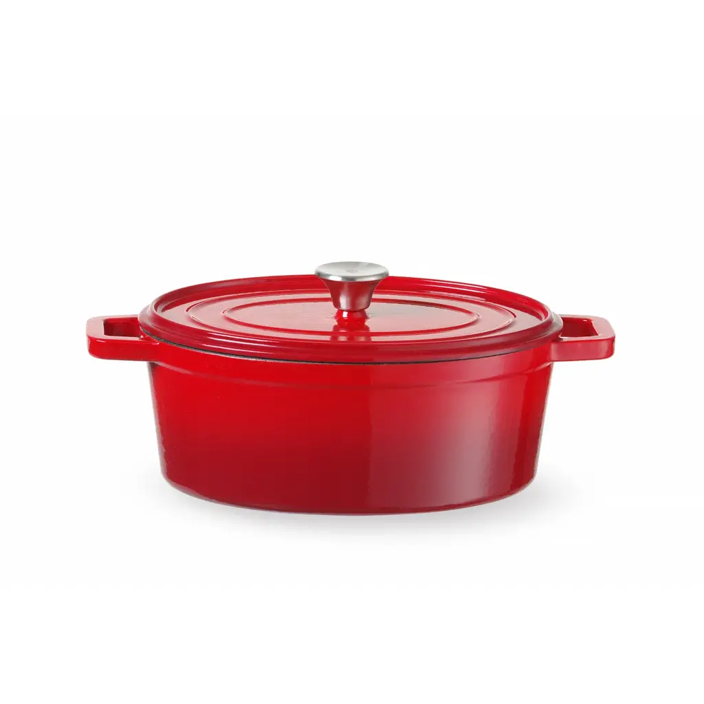 De HENDI Braadpan geëmailleerd gietijzer is de beste pan voor het bereiden van stoofpotten, vooral gerechten die lang en stabiel moeten worden gestoofd zonder aan te branden of plakken. De pan is multifunctioneel - niet alleen geweldig voor stoven, koken, bakken, maar kan ook in een oven worden gebruikt. Ook uitstekend voor het serveren en om de gerechten langer warm te houden dan klassieke pannen.