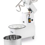 Behuizing van hoogwaardig wit gelakt roestvrijstaal. Mengkom, deksel en spiraal van 18/10 roestvrijstaal. Geïntegreerde timer. Verrijdbaar dankzij 4 wielen, waarvan 2 geremd. Verwijderbare kom en opklapbare kop. Kominhoud: 32 Liter. Kom afmetingen: ø40x(h)26 cm. Maximaal deeg gewicht 25 kg. Gewicht 95 kg.