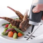 Fles gemaakt van polyethyleen, dop gemaakt van polypropyleen. Afsluiter bevordert de hygiëne en houdt saus langer goed.