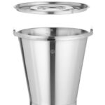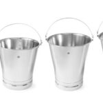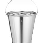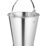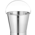 Roestvrijstalen emmer met maatverdeling en verstevigde voet.