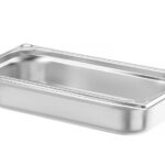 Extra sterk door de geprofileerde hoeken. Versterkte hoeken geven extra stevigheid. Gastronorm maat in de hoek gegraveerd. Door gladde randen eenvoudig te reinigen. Geschikt voor in ovens, koelkasten, bain-marie systemen en chafing dishes.