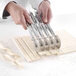 Snijdikte kan eenvoudig aangepast worden van 56 tot 515 mm. Met 5 gladde ø55 mm roestvrijstalen snijwielen.