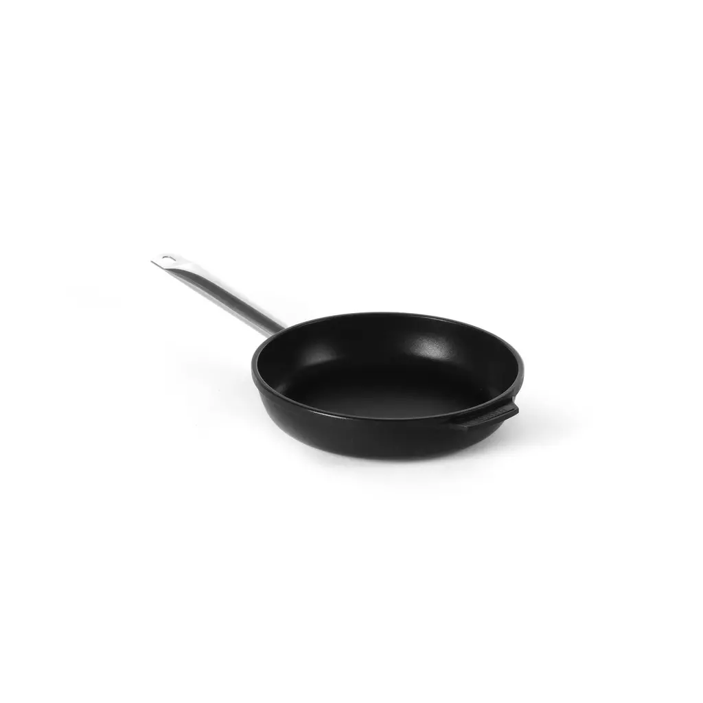 Gemaakt van gietaluminium, geschikt voor alle hittebronnen behalve inductie en zelfs voor gebruik in ovens tot 250°C. Gietaluminium beschikt over uitstekende warmte geleiding, hierdoor is deze pan snel klaar voor gebruik. De handgreep is gemaakt van 18/10 roestvast staal en blijft koel tijdens gebruik.