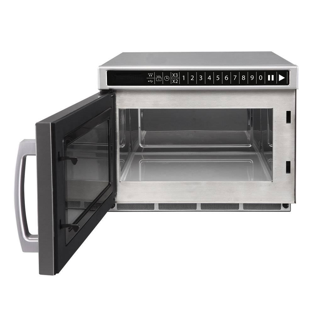 Behuizing en binnenkant van de kamer gemaakt van roestvast staal. Kamer voorzien van een keramische vloer. Eenvoudig af te lezen touch-bedieningspaneel met drukknoppen en digitaal display dat tijd en vermogen weergeeft. Draaiende magnetronantennes onder en boven voor een gelijkmatige energieverdeling, geen draaiende onderdelen in de kamer. Ingebouwde luchtfilter beschermt tegen stof en vuil. Een speciaal systeem dat je eraan herinnert om het filter schoon te maken. Deur met venster voor het observeren van de voortgang in het verlichte interieur van de magnetron. Strakke sluiting; eenvoudig te openen - geen vergrendelingsmechanisme.