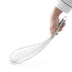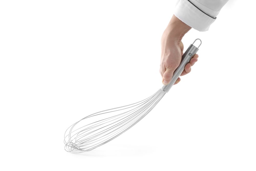 Roestvrijstalen garde met 12 flexibele piano draden van 1,4 mm dik. De garde is voorzien van een ophangoog en is vaatwasmachine geschikt.