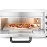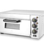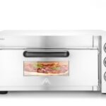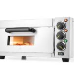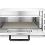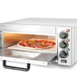 Compacte pizzaoven voorzien van met vuursteen beklede kamervloer. Voorzien van verwarmingselementen in de boven- en onderkant van de kamer.