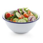 Geëmailleerd servies is helemaal terug van weggeweest. Wit geëmailleerd staal met een mooi blauw randje. Hoge kwaliteit emaille en slijtvast. Hittebestendig tot 350°C en het servies mag in de vaatwasser.