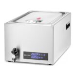 Hoge precisie thermostaat exact (0,1°C) regelbaar van 35-90°C. Behuizing volledig gemaakt van roestvrijstalen. Kan lucht- en waterdicht worden afgesloten dankzij deksel voorzien van siliconen afsluit rand. Voorzien van handvatten en aftapkraan. Inclusief 6 vaks roestvrijstalen inzet.