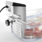 Hoge precisie sous vide thermische circulatie stick met temperatuurregeling 4 inch touchscreen interface. Ontworpen om op elk rond of plat kookvat te passen met een minimale diepte van 16,5 cm, door middel van een klem. Beste prestaties tot 80 liter. Werktemperatuur 5°C tot 99°C, nauwkeurigheid 0,07°C.