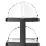De HENDI Dubbele roll-top koelvitrine Duo uit de UNIQ serie is uitgerust met een transparant PET-rolluik dat tot 90° opent. Dit zorgt voor optimale zichtbaarheid en gemakkelijke toegang tot zowel zoete als hartige producten. De vitrine is voorzien van 4 geïntegreerde koelelementen om de optimale temperatuur van etenswaren te behouden en wordt geleverd met 2 roestvrijstalen schalen voor duurzaamheid en gebruiksgemak bij het serveren. De ABS-behuizing combineert een moderne uitstraling met praktische stevigheid, en dankzij de snelle (de)montage is de vitrine ideaal voor dynamische horecaomgevingen.