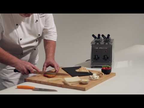 Zeer solide uitvoering. Voorzien van verticale sleuven, ieder met een tostiklem; afzonderlijk instelbaar door middel van een schakelaar met tijdklok. Wordt compleet geleverd met kruimellade. Door de bijzondere constructie ontstaat luchtcirculatie in de sleuven, hierdoor wordt oververhitting voorkomen en kan zonder onderbreking met de Milan tosti apparatuur gewerkt worden.
