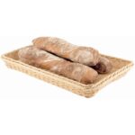 Stapelbare gastronorm polyrotan mand met verchroomd frame voor stabiliteit en duurzaamheid. Ideaal voor het presenteren van hele Franse stokbroden, maar ook zakjes saus en andere producten. Voedsel en vaatwasmachinebestendig.