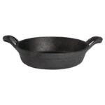 Deze ronde, gietijzeren schaal met oren van Olympia is een duurzame oven-tot-tafelblad schaal. Bereid eenvoudig de lekkerste gerechten in deze schaal en serveer ze vervolgens op de houten onderzetter (GJ555). Wordt geleverd zonder onderzetter.