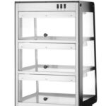 Het HENDI Opzet warmhoudvitrine heeft een duurzame behuizing van gepoedercoat koolstofstaal en deuren van gehard glas, die stevigheid combineren met optimale productzichtbaarheid. Ontworpen voor efficiënte voedselpresentatie en temperatuurregeling, beschikt het over 3 schapniveaus, elk voorzien van eigen halogeenverwarming.