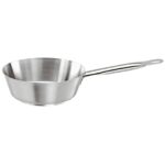 Professionele conische sauteuse. Volledig roestvrijstaal 18/10 met 7 mm dikke sandwichbodem (roestvrijstaal/aluminium/roestvrijstaal). Geschikt voor alle warmtebronnen inclusief inductie.