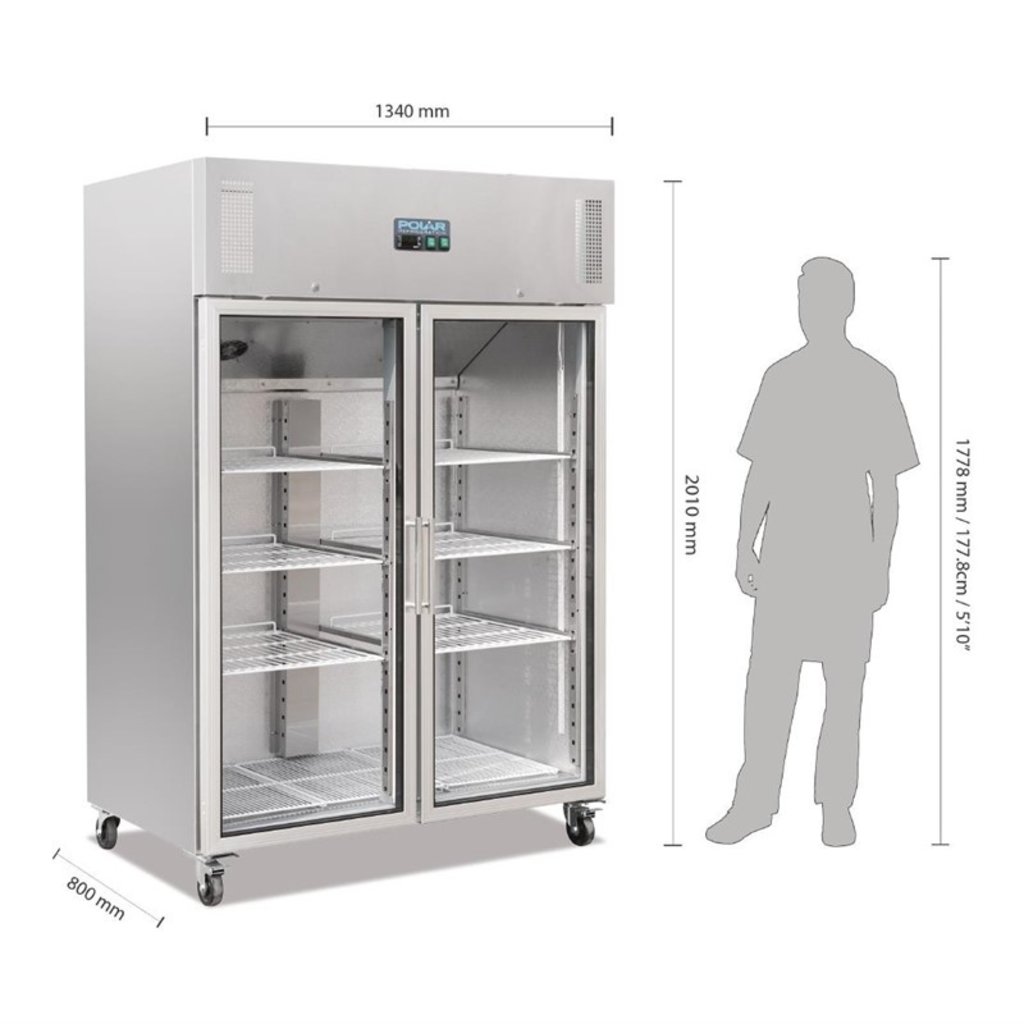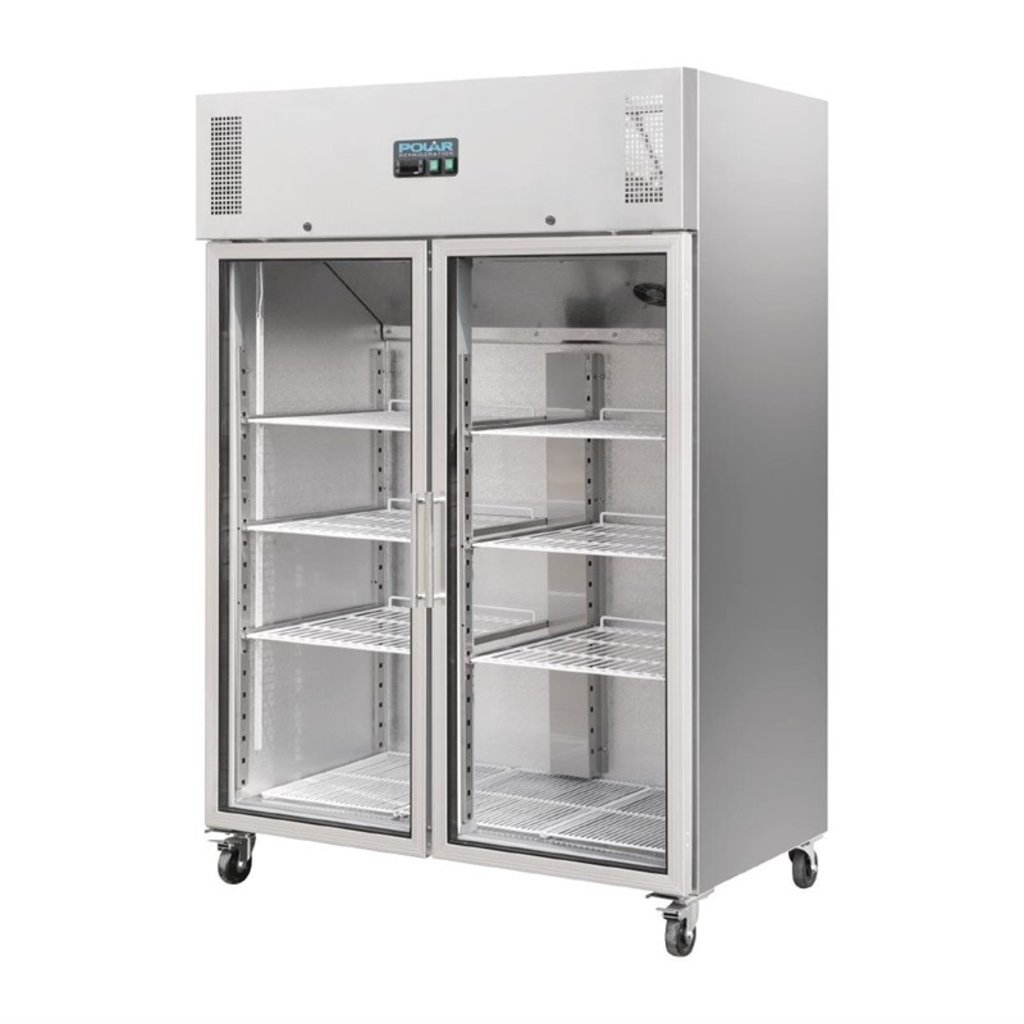 Betrouwbare en krachtige 1200L koeling van Polar. De koeling biedt royale opslagruimte voor voedsel en er passen 20 GN 2/1 bakken in. Zeer stijlvol dankzij de glazen deur en eenvoudig te reinigen dankzij de robuuste RVS behuizing. De ventilator ondersteunde koeling en digitale controller zorgen dat de inhoud op precies de juiste temperatuur blijft.