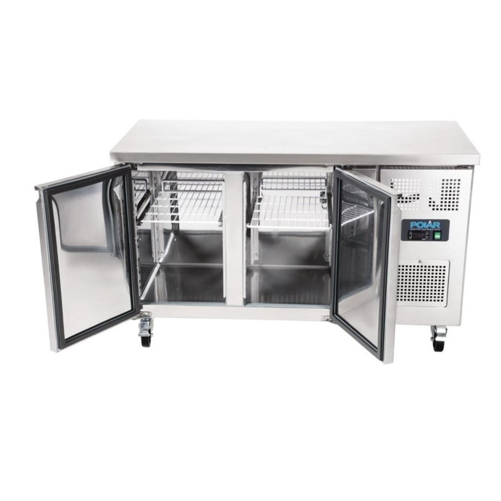 De Polar U-serie tweedeurs koelwerkbank is speciaal ontworpen voor de drukste professionele keukens, met een indrukwekkend koelvermogen en robuuste professionele bouwkwaliteit.