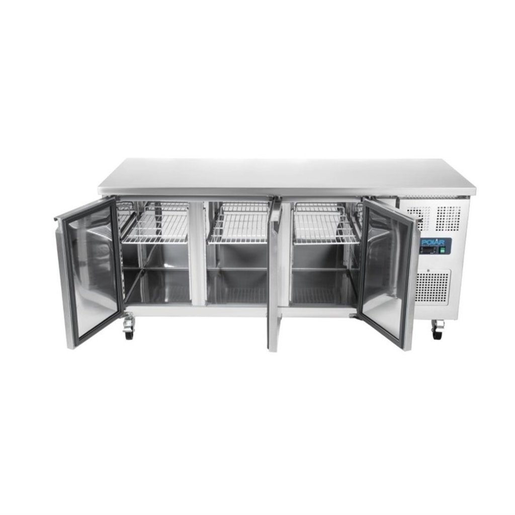 Met 3 deuren en een 1,8m groot RVS werkblad biedt de Polar U-serie heavy-duty koelwerkbank u alle capaciteit en functionaliteit die u nodig heeft voor de professionele keuken. Het gebruik is erg eenvoudig met de digitale bediening, terwijl het gastronorm compatibele interieur uw GN 1/1 bakken binnen handbereik houdt.