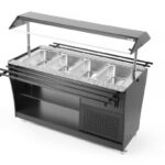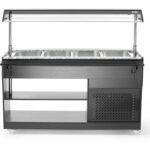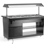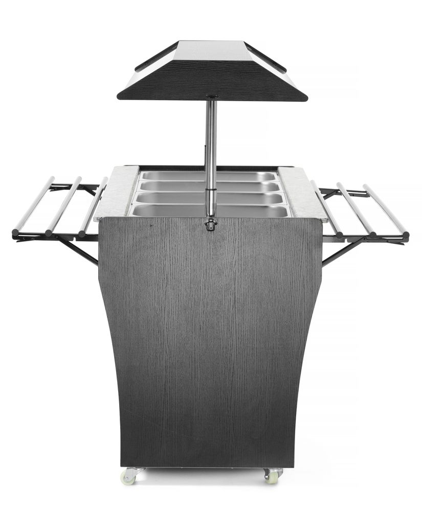 Het Arktic Salad-buffet biedt ruimte voor 4 GN 1/1-containers, die bij de set zijn inbegrepen. Het buffet is uitgerust met verlichting in de luifel, heeft 2 planken eronder voor het opbergen van borden en bestek en is gemakkelijk te verplaatsen dankzij 4 zwenkwielen. Dit buffet is de ideale oplossing voor zelfbedieningsgelegenheden of evenementen, omdat het aan beide zijden een plank voor dienbladen heeft en ervoor zorgt dat voedsel perfect koel wordt gehouden.