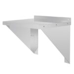 Plaats uw oven of magnetron op deze stevige RVS wandplank en bespaar kostbare ruimte op uw werkblad. De wandplank meet 560x560mm – groot genoeg voor de meeste ovens en magnetrons – en wordt geleverd inclusief de benodigde bevestigingsmaterialen.
