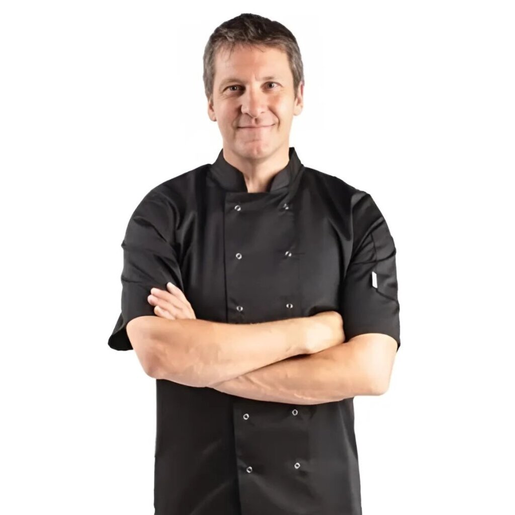 Het ontwerp met korte mouw houdt uw armen koel en uw handen vrij om te werken bij het voorbereiden, koken en serveren van gerechten. Inclusief thermometerzakje op de linkermouw. De Vegas zwarte koksbuis is zo een praktische, comfortabele en professionele toevoeging aan uw keukenuitrusting.